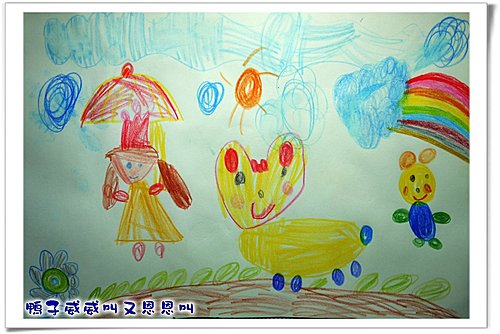 (今天是雨天,你有看到小恩畫的雨滴嗎? )