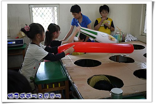 在體育館,我們又遇到了簡新雅跟蘇奕慈,他們正在用力的揮著他們手上的氣球棒。