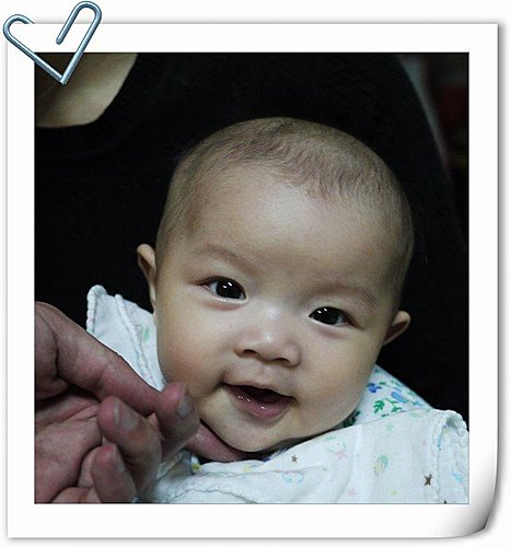 我阿爸說這樣我這個小光頭比較不會覺得冷,哀,虧你想的到。