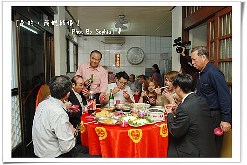 逐桌敬酒,寶舅&寶舅媽可能一時脫隊了,等等就會跟上的。
