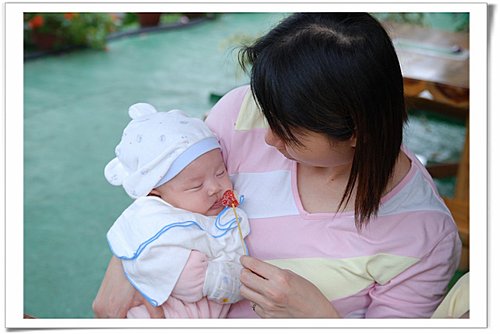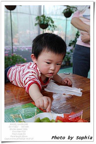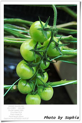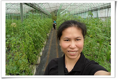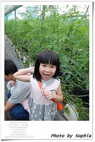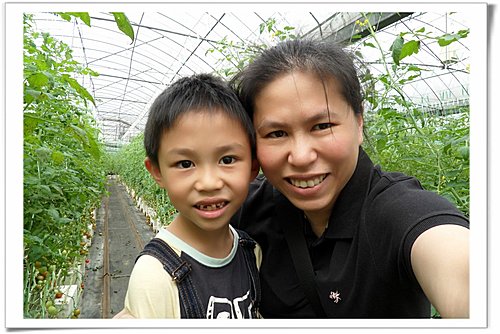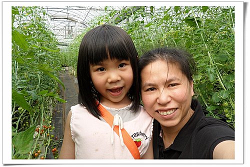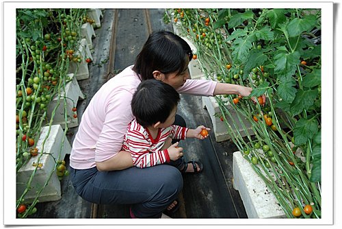 威威抱著小柚子採番茄,小柚子可是狠腳色阿。