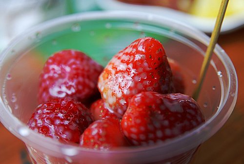 葳葳姑姑拿草莓請牛妹吃,哈哈,她在睡覺ㄋㄟˋ。