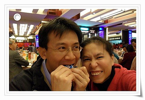 今天參加"麗玲"的婚禮,哈哈,逮到機會叫翁爸比跟猶大豬一起玩自拍。