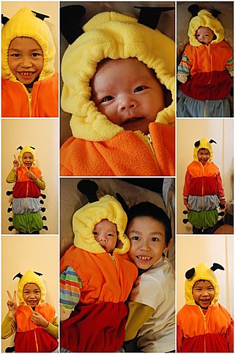 應阿舅的要求,舅媽買了一套毛毛蟲裝,其實是防踢被啦。