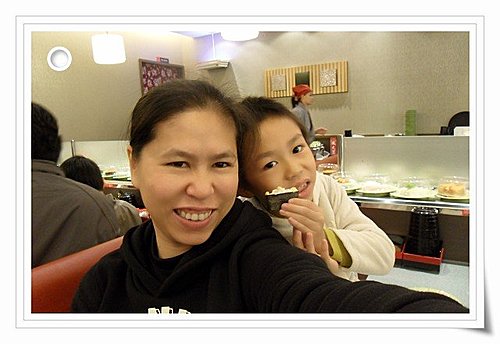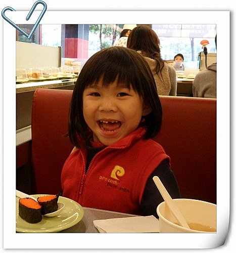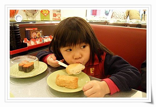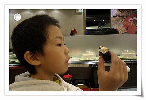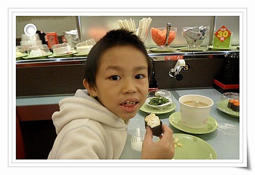 小威 : 迴轉壽司一直轉來轉去,很好玩,很方邊,他超喜歡的啦。