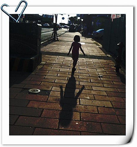 小恩妹妹跑在前面,地上閃閃發亮的,趕緊拿出現機拍下來。