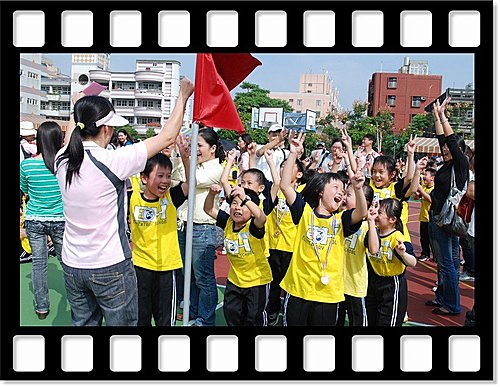 大會成績報告:一年級趣味競賽~滾球大賽,冠軍:一年六班。