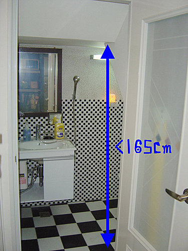 所以高的人要去上小矮人的廁所阿,頭要低一點歐,不然就會撞到頭,很痛的ㄡ。