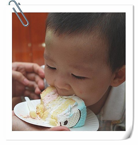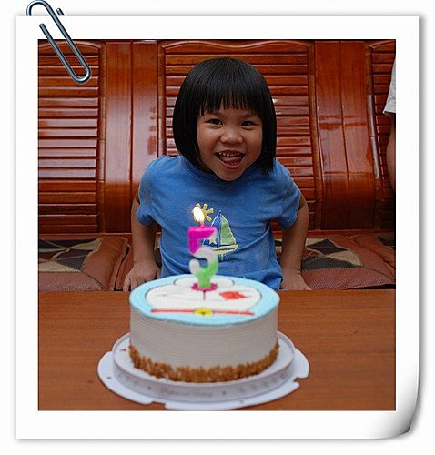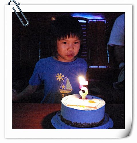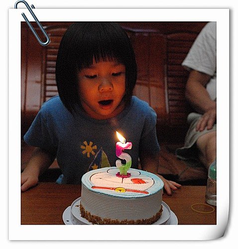 今天是小恩妹妹五歲生日,他一下課就打電話來提醒猶大豬要他"美樂蒂"的蛋糕。