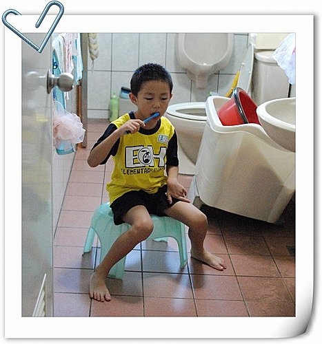 連刷牙洗臉都懶的站了,拿個小椅子坐著刷牙洗臉。
