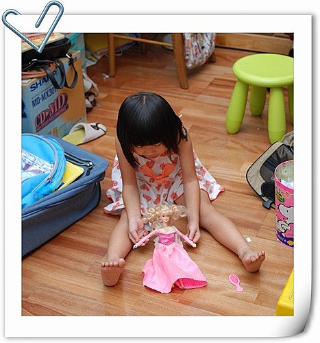 自從舅媽送小恩妹妹一個芭比娃娃之後,小恩每天都在玩歐。