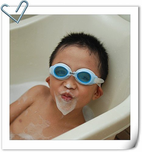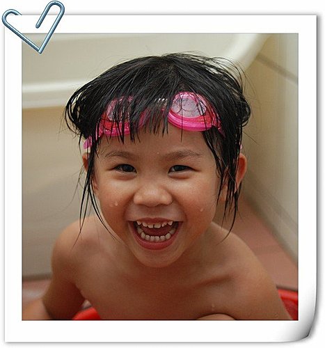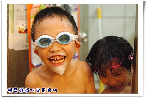這兩個小鬼,今天又戴蛙鏡洗澡了。