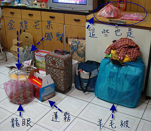 他們的遊覽車把他們送到我們家門口的時候,小威進門大喊"ㄚ舅出來搬東西"。