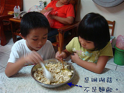 小威說,阿嬤我們不是有買珊瑚菇? 我要吃。