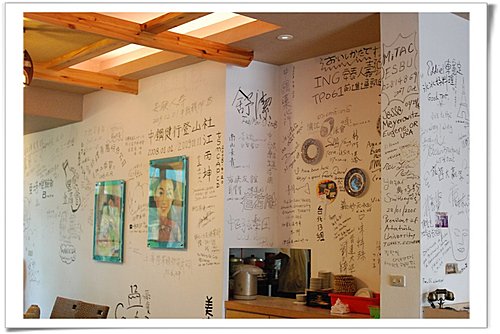 餐廳有一面牆讓 來吃過的人 簽名,猶大豬忘記了去塗鴉了啦。:::>_<:::