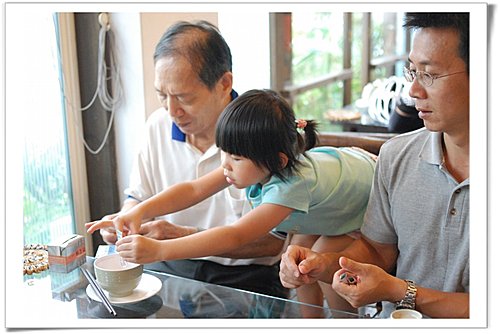 小恩貼心的幫他阿公準備午餐前的營養食品。