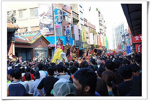 在福佑宮前面,只看到滿滿的人頭,大家在聚集在這邊看表演。非常的熱鬧,人也就塞住了。