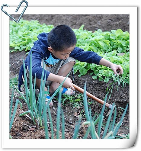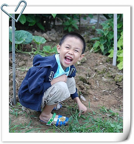 小威可能覺得拔草拔的很興奮,居然一邊拔草一邊尖叫。