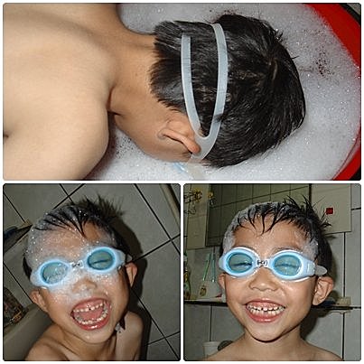 是在家裡的澡盆練習,從洗頭開始ㄟ,