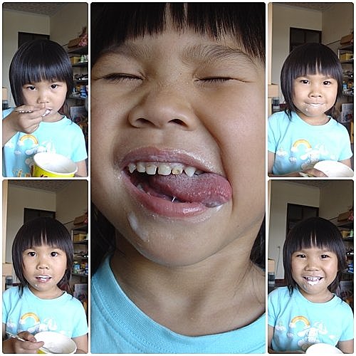 小恩今天吃很快,還自己吃的歐。平常她都會說:你不餵我,我就會越吃越慢歐。