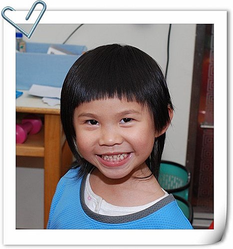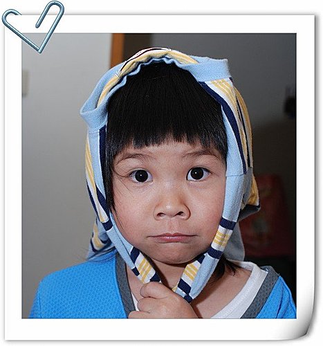 小恩剪新髮型了(明明就是威威隨便拿剪刀給他剪的,還說有小丸子的風格ㄟ)