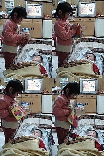 最近小柚子開始看書了,所以ㄋ,小恩就會翻書給小柚子看。