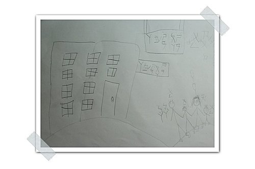 小威的最新畫作,他說這是全家人一起去阿里山。