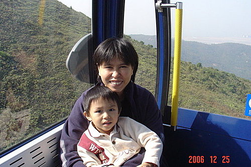 小恩心情很好,鄭在昂坪纜車上,要去看大佛。