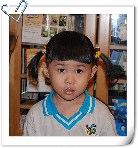 猶大豬好不容易說服小恩綁頭髮,配上他阿舅給他買的髮飾。