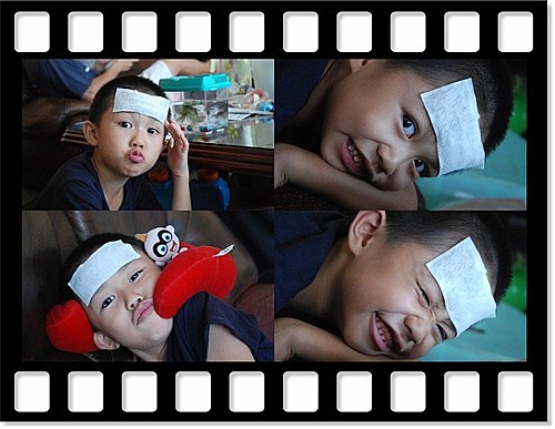 小威因為急性咽喉炎又發燒了,所以貼了退熱貼。