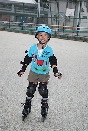 星期天去中央大學玩,小威溜直排輪,小恩在躲狗。